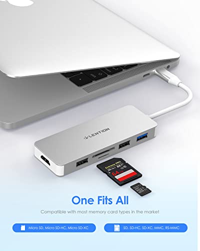 LENTION 7-in-1 Hub USB C a HDMI 4K, USB 3.0 e USB 2.0, Lettore di Schede SD/Micro SD, PD 60W, Adattatore per 2023-2016 MacBook PRO M2 M1, Nuovo Mac Air, iPhone 15 Plus PRO Max, Surface PRO 9 (C17)