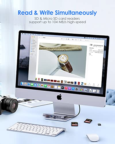 【Lettore di Schede SD+Micro SD】La lettore di schede SD e Micro SD supportano UHS-1 (valore teorico 104 MB/s), entrambi gli slot per lettori di schede possono leggere e scrivere contemporaneamente;