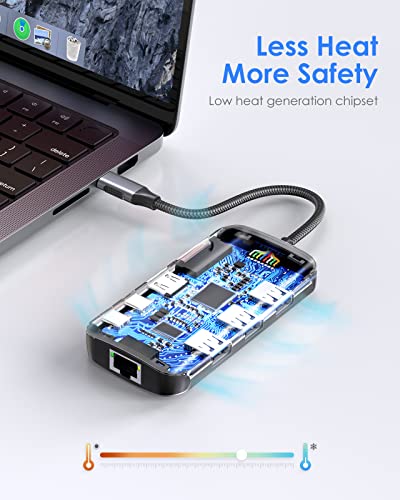 Plug and Play - L'adattatore USB C hub multiport è compatibile con 2016-2023 MacBook Pro 13/15/16 con porte Thunderbolt 3, 2018-2023 MacBook Air, MacBook Pro & Air 2020 M1, MacBook 12, Nuovo iMac, iMac Pro, Surface Go/Book 2, Chromebook, Dell, HP, Acer, Lenovo, più dispositivi con porta USB-C o Thunderbolt 3 a piena funzione (Non supporta Superdrive)