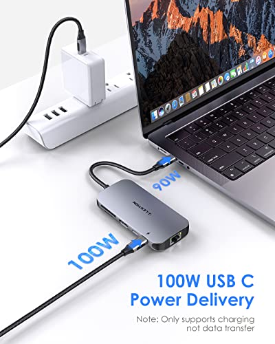 LENTION Hub USB C con 4K HDMI, Gigabit Ethernet, Lettore di schede SD/Micro SD, 3 USB 3.0, Dati di tipo C e Adattatore di Ricarica, Compatibile 2023-2016 MacBook Pro, Nuovo Mac Air/Surface(CB-CE57se)