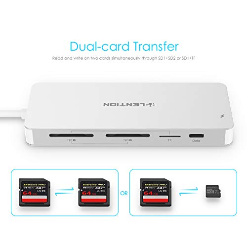 Lettura & Scrittura Veloce Più Power Delivery: i lettori di schede supportano due schede R&W contemporaneamente tramite SD1+SD2 o SD1+TF (non per la combinazione di SD2+TF), fino alla velocità di UHS-I (104MB/s). Dotato di due porte USB-C, una per la ricarica e l'altra per il trasferimento di dati fino a 5 Gbps