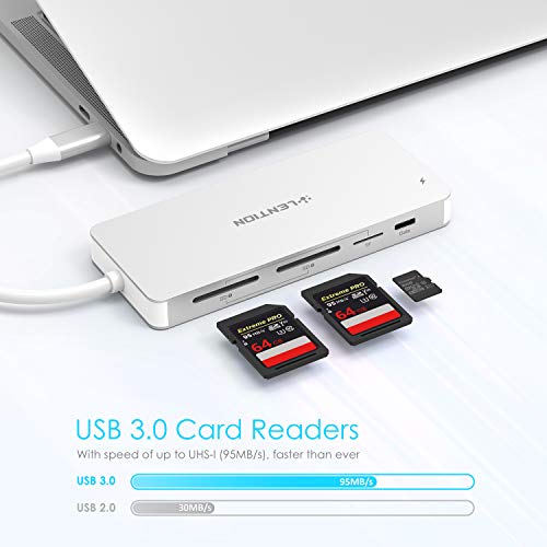 LENTION Hub USB C con Lettore di Schede a 3 Slot, 4K HDMI, USB 3.0, USB 2.0, Dati/Ricarica di Type-C per 2016-2023 MacBook Pro, New Mac Air/Surface, Adattatore Driver Stabile (CB-C19, Argento)