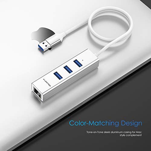 LENTION Hub USB3.0 a 3 Porte con Adattatore Gigabit Ethernet per MacBook Air/PRO (Generazione Precedente), iMac, Surface, Chromebook, più Laptop di Type A - Ultrasottile(CB-H23s-0.5M, Argento)