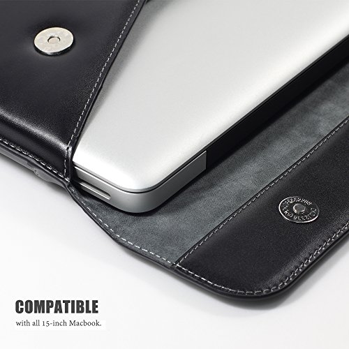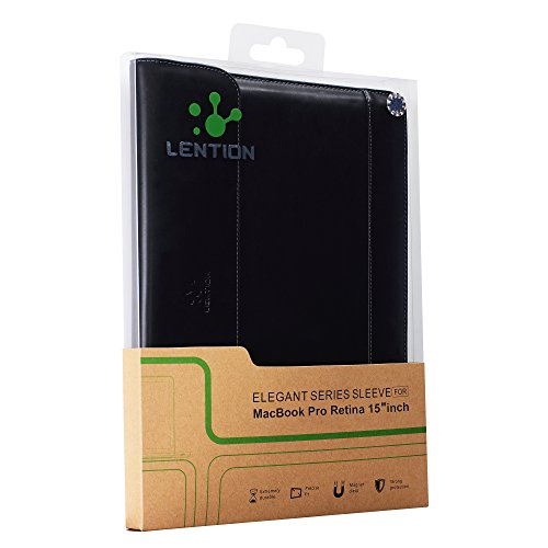 LENTION Split Leather Sleeve, Custodia di Cuoio per MacBook Pro 15”, Premium Alta Qualità, Snap Magnetici,Tocco Leggero, Cover Protettiva con Laptop 15-15.6 pollic ( Nero )