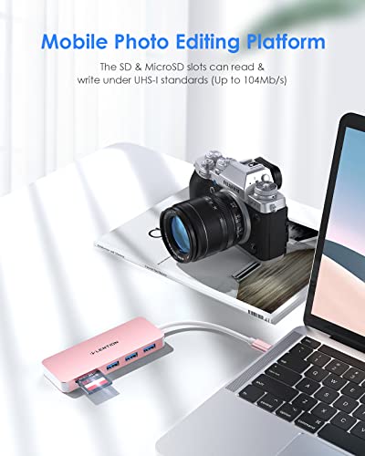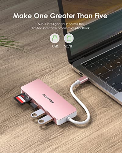LENTION Hub USB-C con 3 Porte USB 3.0 e Lettore di schede SD/TF Compatibile con MacBook Air 2018, MacBook PRO 13/15 (Thunderbolt 3), ChromeBook, ECC, Adattatore Multiport Type-C (Oro Rosa)