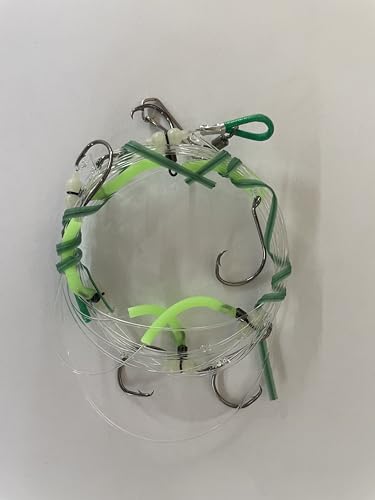 Lenza completa per Bolentino di profondita, lunghezza 2mt, 5 ami VMC 1/0 circle, braccioli fluo, completo di moschettone e girella, prodotto artigianale creato dai nostri esperti (4 lenze)