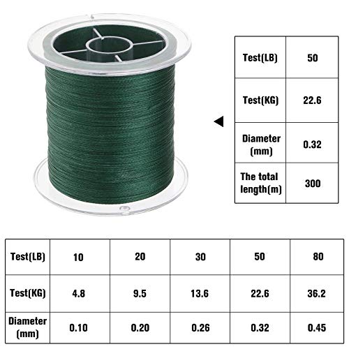 300 m di lenza intrecciata, 4 fili di PE verde scuro per la pesca con esche grossolane (50 libbre - 0,32 mm)