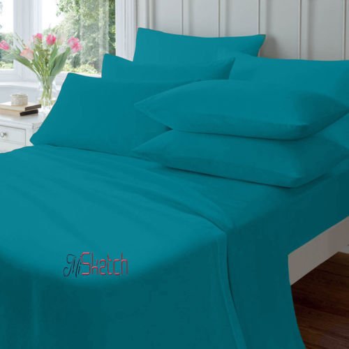 Lenzuola con angoli per materassi alti (40 cm), 100% cotone egiziano, per letto singolo, matrimoniale, king e super king, 100% cotone/cotone/cotone egiziano, Teal, Coppia di federe per cuscini