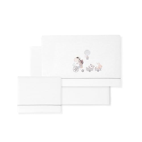 Set di 3 Lenzuola per Mini Culla Neonato in FLANELLA Jirafa Bicicleta bianco grigio · 100% Cotone · Lenzuolo Invernale per Mini lettino