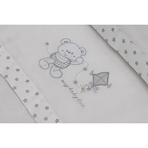 Set lenzuola della collezione My Baby Love per mini culla per neonati di colore bianco e grigio. Realizzato in 100% cotone