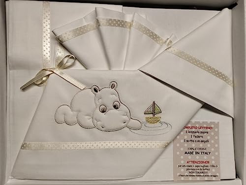 Set Lenzuola lettino neonato 100% made in Italy (Set da 3 Pezzi: Sopra+Sotto con angoli+Federa) 100% cotone