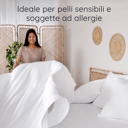 IPOALLERGENICO: A differenza delle lenzuola singolo cotone, il lenzuolo singolo blu di Bambaw è altamente traspirante, rendendo impossibile la vita degli acari della polvere. Queste lenzuola singolo antiacaro sono la scelta ideale per chi ha la pelle sensibile o le allergie.