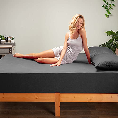 Lenzuola Matrimoniali con Angoli 180x200 cm Grigio Scuro in Cotone Jersey per Letto King Size con Materasso fino a 30cm Tessuto Anti-Acaro e Ipoallergenico di Alta Qualità Lavabile in Lavatrice