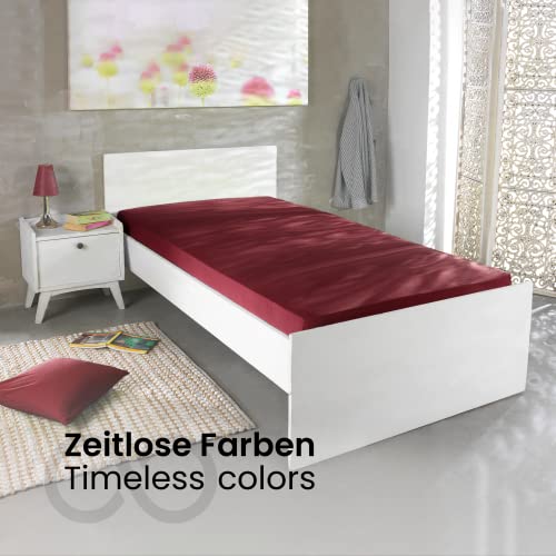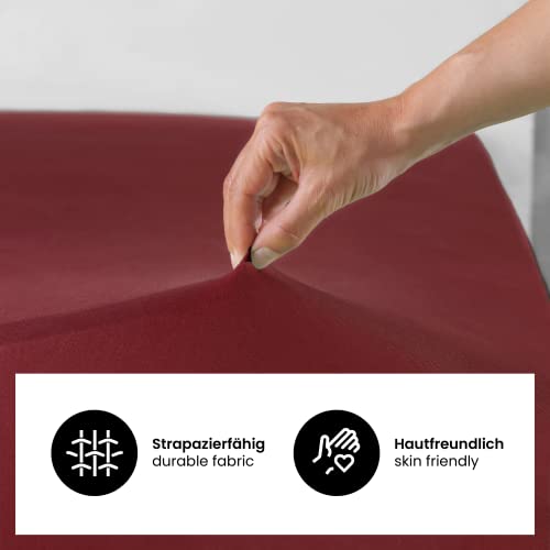 Lenzuolo adangoli in jersey, con angoli elasticizzati - 100% cotone, 100% cotone, bordeaux/vinaccia, 120 x 200 cm