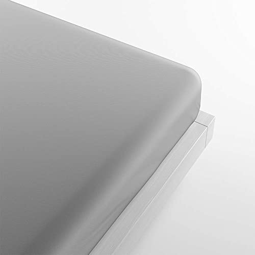Lenzuolo con angoli in Raso di Cotone Satin, Disponibile in varie dimensioni e colori (Grigio, Matrimoniale (180 x 200 x 25 cm))