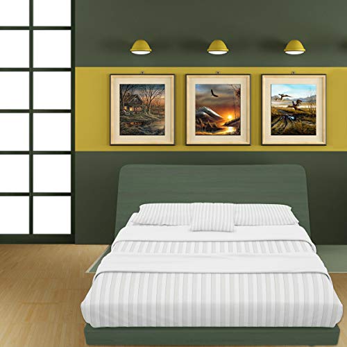 Lenzuolo con angoli elasticizzati, 100% cotone egiziano 300 fili, in raso bianco a righe, White, Super King