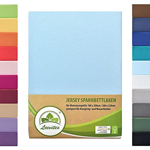 Lenzuolo con angoli elasticizzati per letti ad acqua e letti a molle, in jersey 200 x 220 cm, 40 cm di altezza, 100% cotone, circa 160 g/m²-, 100% cotone, Hellblau / Himmelblau, 200 x 220 cm