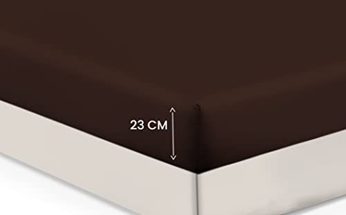 Lenzuolo con angoli, in policotone di Percalle, 180 fili, non è richiesta stiratura, tinta unita, 50% cotone 50% poliestere, Chocolate, Singolo