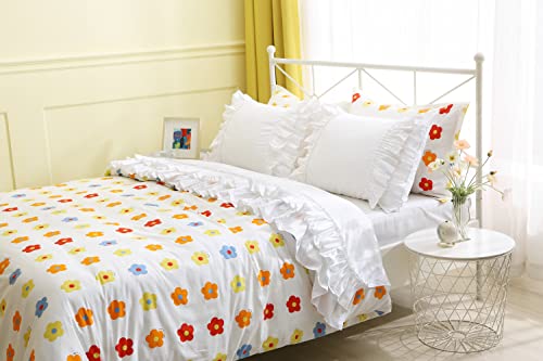 Lenzuolo bianco con volant in cotone per letto matrimoniale, 1 pezzo