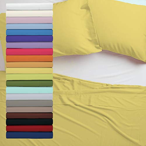 Lenzuolo Sopra 100% Cotone Misuracm 180x300 Letto da Una Piazza e Mezza Francese Colore GIALLO Made in Italy 57 fili al cm2