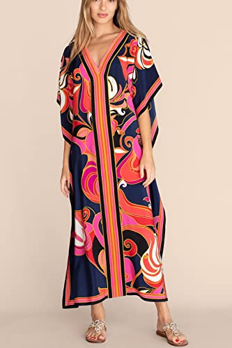 LeofL Abito casual da donna lungo maxi camicia da notte caftano tunica taglia libera, Colore 9, Taglia unica