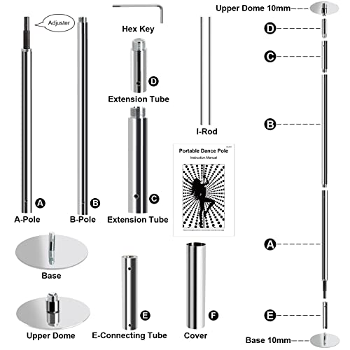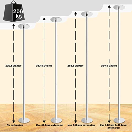 Leogreen Palo Pole Dance Professionale | Regolabile in Altezza 222,5-280 cm | Statico e Girevole | capacità di 200 kg | Acciaio Cromato elettrolitico | per Esercizi di Fitness, Club, Feste