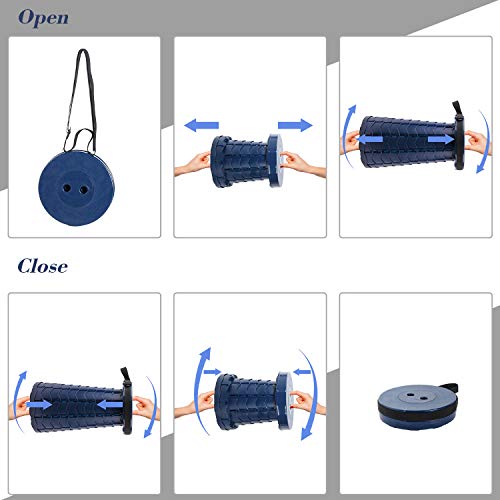 Design portatile e leggero: la dimensione della confezione è di soli 25 cm di diametro e pesa solo 1.02 kg. Questo sgabello retrattile è leggero, piccolo e comodo da riporre nel bagaglio o nel deposito. La tracolla regolabile rende questo sgabello facile da portare in mano o appeso alla spalla.