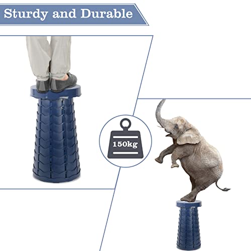 Leogreen Sgabello Pieghevole, Sgabello Telescopico Portatile, Sgabello Regolabile per la Pesca Barbecue Campeggio Giardinaggio Cucina interna, carico massimo 150kg, Blu navy