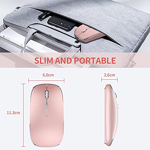 Leolee Mouse Wireless Ricaricabile, 2.4G Silenzioso Senza Fili Mouse con Ricevitore USB di Tipo C 3 Regolabili DPI Mini Sottile e Portatile Viaggio Mouse per PC, Laptop, Computer, MacBook (Oro Rosa)