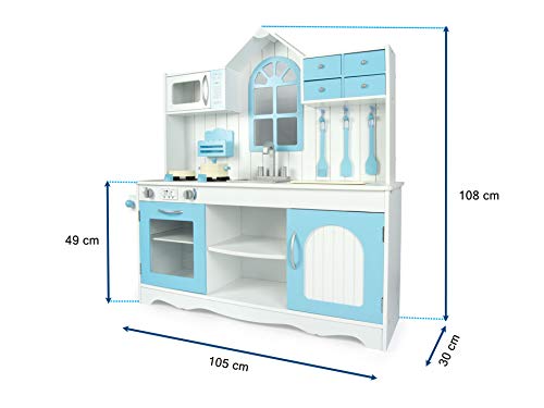 Leomark Cucina Exclusive Royal Azzurro, Giocattolo per Bambini, Gioco in Legno, Giocare d'imitazione, Accessori per Cucina, educazione tavola, fornello Divertimento, Dimensioni: 105x30x108cm (LxPxA)