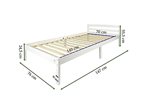 LEOMARK letto lettino per bambini, solido ed elegante in legno massello, spacio per dormire 140x70 cm, rete a doghe, colore bianco CLASIC WHITE