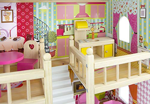 Leomark Casa Residence delle Bambole, Sogno Mansion in Legno, Mobili e Accessori, 4 Bambole incluse, Dolls House con bamboline, Giocatollo per bambini, Altezza: 90cm