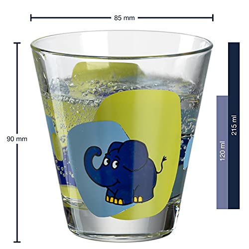 Leonardo Bambini 021421 - Set di 6 bicchieri per succo di frutta, lavabili in lavastoviglie, in vetro con motivo topo, elefante, anatra, 215 ml