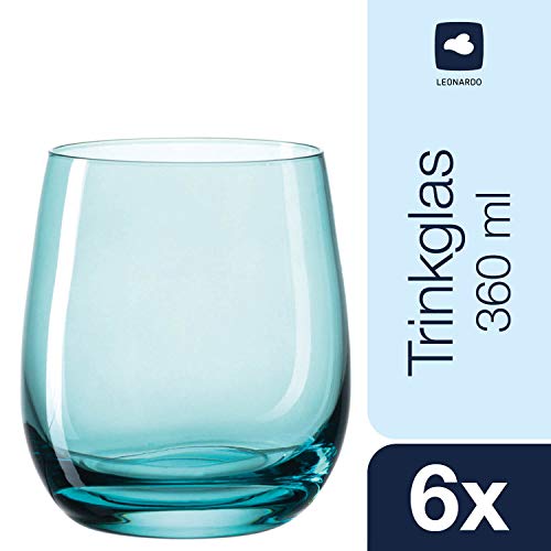 LEONARDO, Set di 6 Bicchieri in Vetro per l'acqua, Modello “Sora”, Adatti alla lavastoviglie, Vetro, Turchese, Piccolo