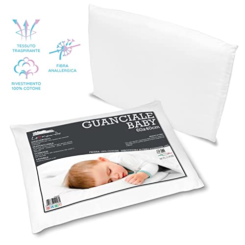 Leonardo baby - cuscino lettino 60x40 cm altezza 10 cm 1 PZ, cuscino baby per bambino - federa in microfibra e imbottitura in 100% fibra di poliestere - prodotto 100% made in italy