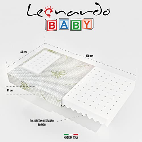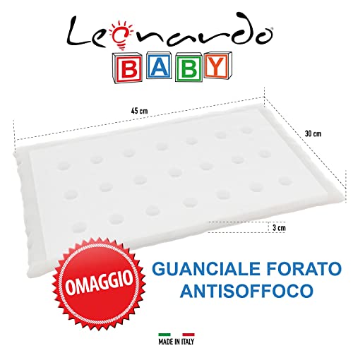 Leonardo baby - materasso antisoffoco per culla 60x120 cm alto 11 cm - sfoderabile - lavabile - guanciale antisoffoco omaggio - Made in Italy