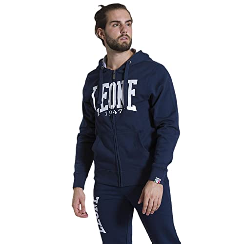 Leone - Felpa da Uomo con Cappuccio e Zip Basic - Navy Blue (10), L