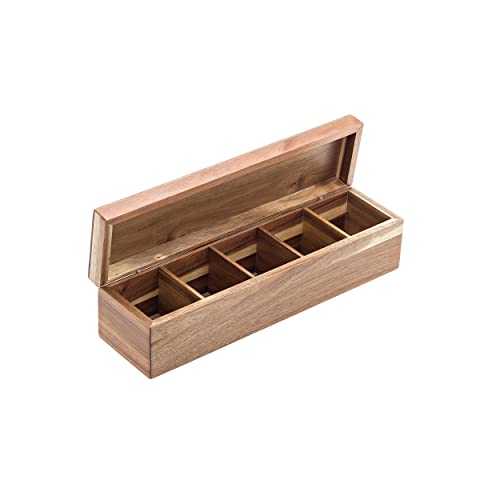 PRATICO | 5 scomparti in legno con colore naturale per organizzare le tue bustine come preferisci. Il comodo coperchio protegge le bustine di tea e tisane e rende la la scatola porta bustine di te un accessorio da tavolo o da tenere in un cassetto.