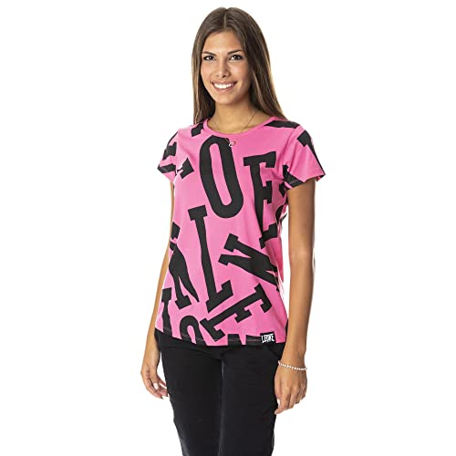 LEONE - T-Shirt Pattern da Donna a Maniche Corte Fluo&Black - Neon Fuchsia (61N), M