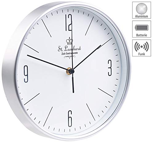 St. Leonhard parete Orologio radiocontrollato: Classico orologio da parete radiocontrollato con cifre grandi e design piatto, Ø 25 cm (Orologio senza fili, Orologio da cucina, silenzioso)