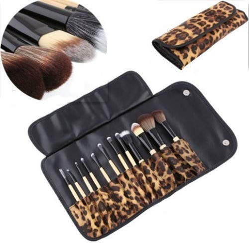 Leopard Pattern Set 12 Trucco Pennelli - Peli Di Nylon, Virola In Alluminio, Impugnatura In Legno Naturale, Borsa In Pelle by DELIAWINTERFEL
