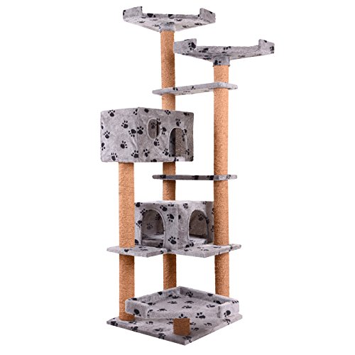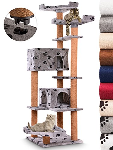Leopet Tiragraffi albero palestra gioco per gatti altezza media con 2 tane e 3 posti d'osservazione colore grigio con zampette nere
