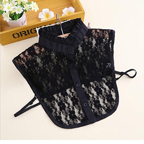 LEORX Mezza maglia collo donne pizzo floreale colletto staccabile (nero)