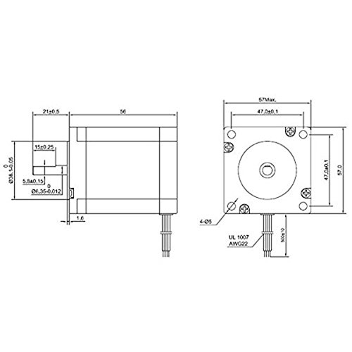 NEMA 23 bipolare 5,7 x 5,7 x 5,2 cm a 4 fili. Angolo di passo: 1,8 gradi. Coppia di tenuta: 1,26 Nm