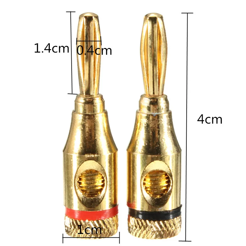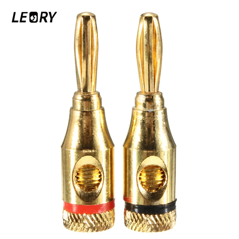 LEORY 4Pcs 4mm Banana Plug Gold-plated Audio Speaker Cable Wire Connector Screw Type