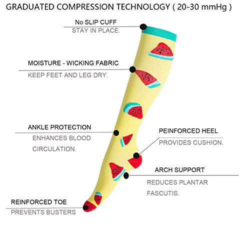 LEOSTEP Calze a compressione per uomo e donna (6 paia) Tubo lungo antiscivolo ideale per corsa, infermieristica, circolazione, i viaggi da trekking e le calze di volo 20-30 mmHg