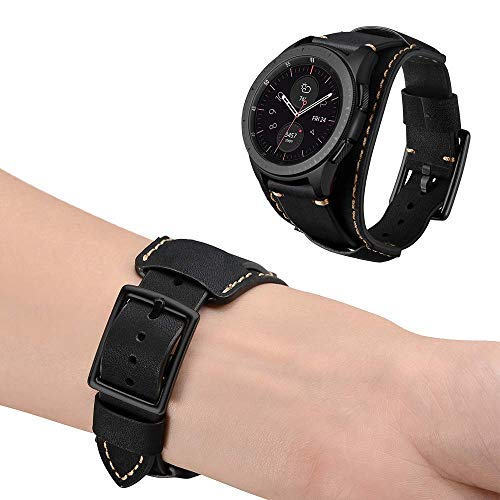Leotop Compatibile con Samsung Galaxy Watch 46mm/Gear S3 Frontier/Galaxy Watch 3 45mm /Classic Cinturino, 22mm Cinturini in Vera Pelle Bracciale Ricambio Fibbia in Acciaio Inossidabile(22 mm, Nero)