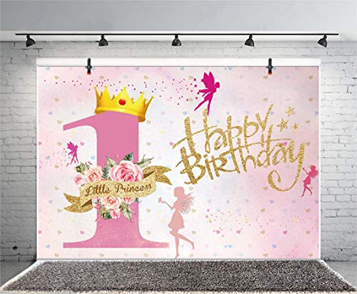 Leowefowa 2,2x1,5m Vinile 1 ° compleanno Foto da Sfondo Buon compleanno Paillettes dorate Piccola principessa Angelo Fondali Fotografia Partito Bambini Photo Studio Puntelli Photo Booth