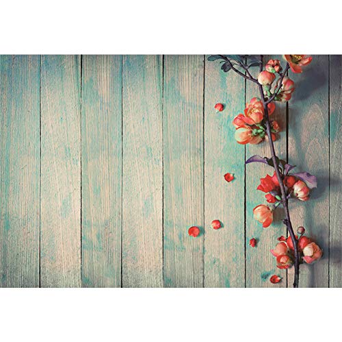 Leowefowa 2,2x1,5m Vinile Primavera Foto da Sfondo Plance di legno di struttura rustica dell'annata Fiori freschi Fondali Fotografia Partito Photo Studio Puntelli Photo Booth