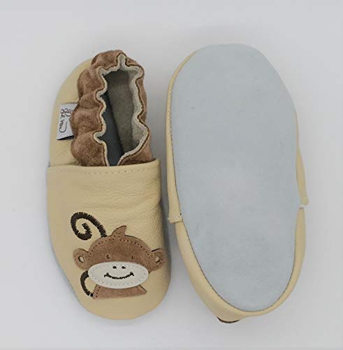 LEPEPPE - Scarpine in Morbida Pelle Prima Infanzia - Pantofole Bambino - suola in pelle antiscivolo - Babucce - Scarpette fino al 26/27 - Monkey - Scimmietta